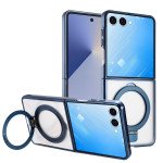 Crystal Clear MagSafe Phone Case with Magnetic Kickstand Ring for Samsung Galaxy Z Flip 7 (Blue)
