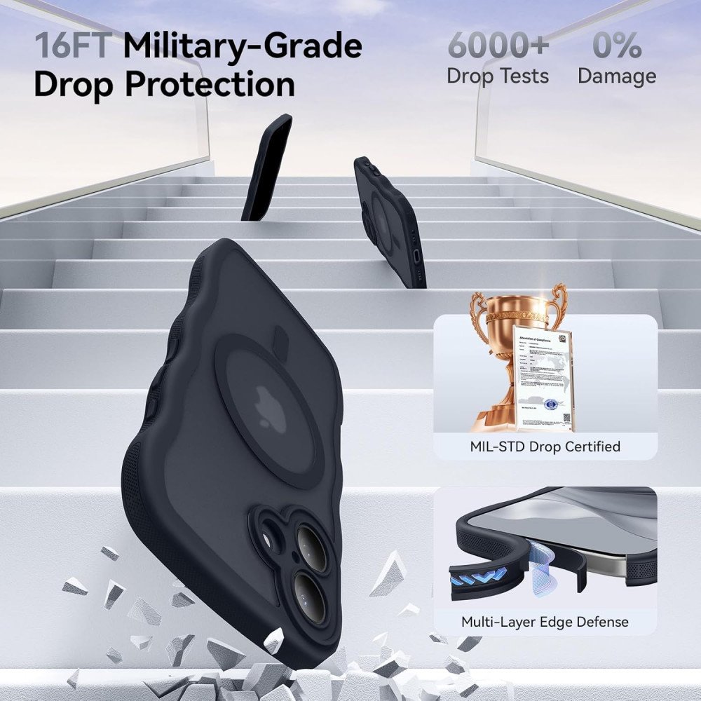 Description Bullet | Upgrade your phone protection with this matte translucent case, featuring a built-in magnetic ring for flawless MagSafe compatibility. Its unique wavy curly design offers standout style, while the advanced camera edge protection keeps your device safe for everyday use. Enjoy effortless MagSafe charging and accessory attachment with integrated magnetic ring technology. Stand out thanks to the exclusive wavy curly design and smooth matte finish. Your device’s camera lens is shielded from drops or scratches by thoughtfully engineered edge protection. The case’s tactile sides enhance your grip to prevent accidental slips, all while maintaining a slim and pocket-friendly profile. Quality materials ensure a shock-resistant build, reliably protecting your phone without extra bulk. |