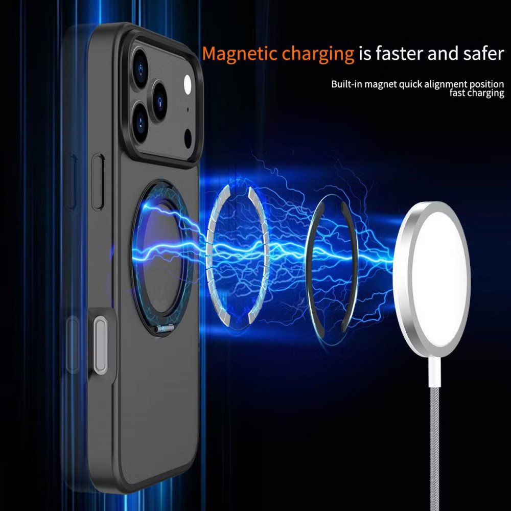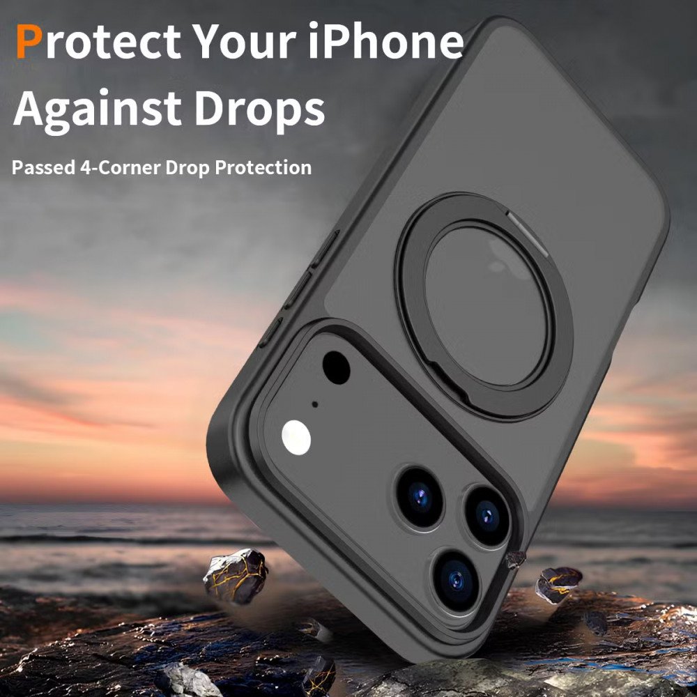 | Description Bullet | Protect your device with a durable edge bumper that absorbs shocks and prevents damage. Easily attach MagSafe accessories thanks to the integrated magnetic ring for secure alignment. Enjoy hands-free viewing with the 360 rotating magnetic kickstand perfect for video calls and movies. Show off your phone’s design with a sleek matte translucent finish that resists fingerprints. Get a reliable grip with textured side edges, reducing the chance of accidental slips. Discover advanced protection and convenience in one sleek phone case, designed for your iPhone 17 Pro Max. Featuring MagSafe compatibility and a 360 rotating magnetic kickstand, this case elevates everyday use with hands-free functionality and premium style. |