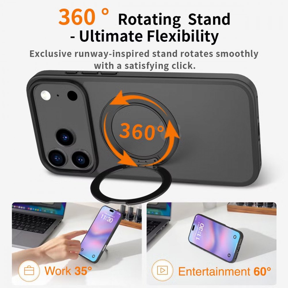 | Description Main | Discover advanced protection and convenience in one sleek phone case. Featuring MagSafe compatibility and a 360 rotating magnetic kickstand, this case elevates everyday use with hands-free functionality and premium style. |