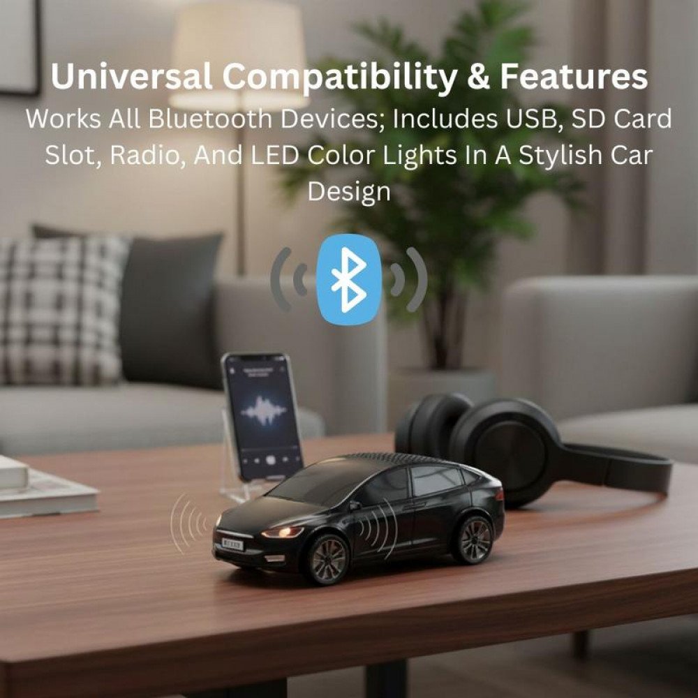 • Features: Portable Wireless Bluetooth Speaker with USB Slot. Micro SD Card Slot, Radio Feature, Auxiliary Port, LED Color Light, Car Design