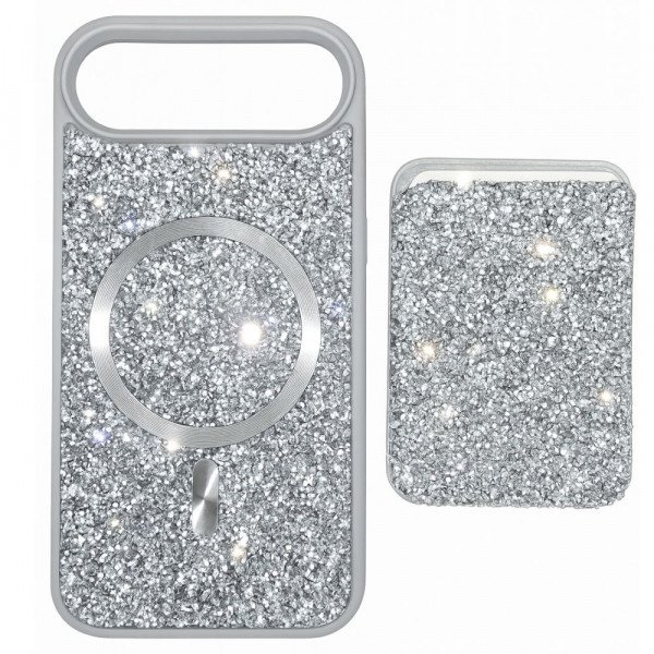 Sparkling Diamond Rhinestone Magnetic Magsafe Phone Case with Magsafe Wallet for Apple iPhone 17 Air (Silver)
