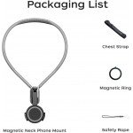 | Feature | Magnetic neck mount, Flexible angle adjustment, Anti-shake stability, Hands-free operation, Chest stand for video recording, Compatible with most smartphones, Durable and lightweight design |