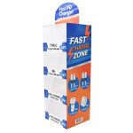 Feature Countertop point-of-sale display, Dual port wall chargers included, Dual port car chargers included, Mixed black and white colorways, USB-C to USB-C 3ft cables, Lightning to USB-C 3ft cables, Easy to reload stock