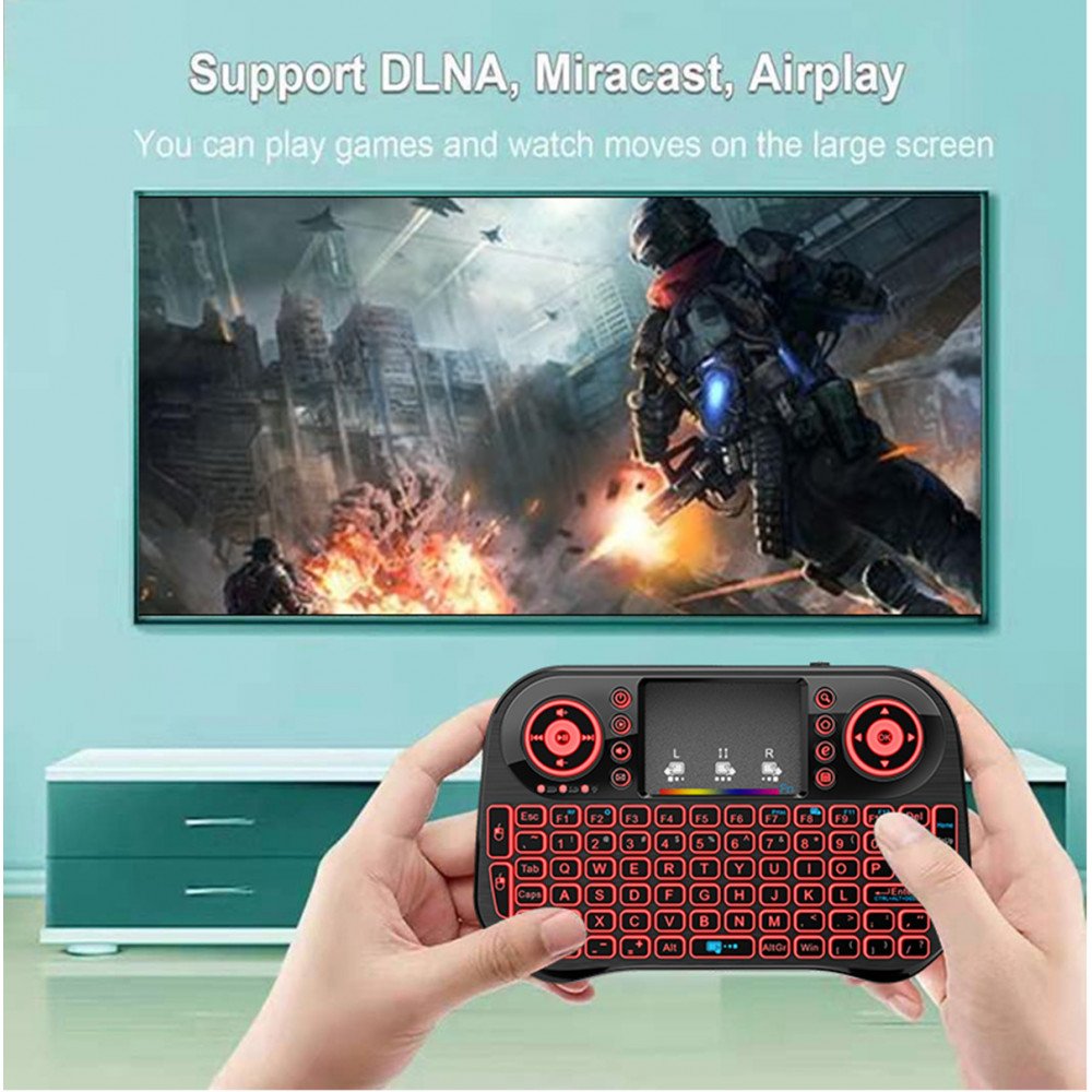 WC Description This compact keyboard with backlight doubles as an air mouse. It's wireless, rechargeable, and works with mobile devices, PCs, TV boxes, and game systems. The versatile i10Plus enhances your digital experience across platforms.