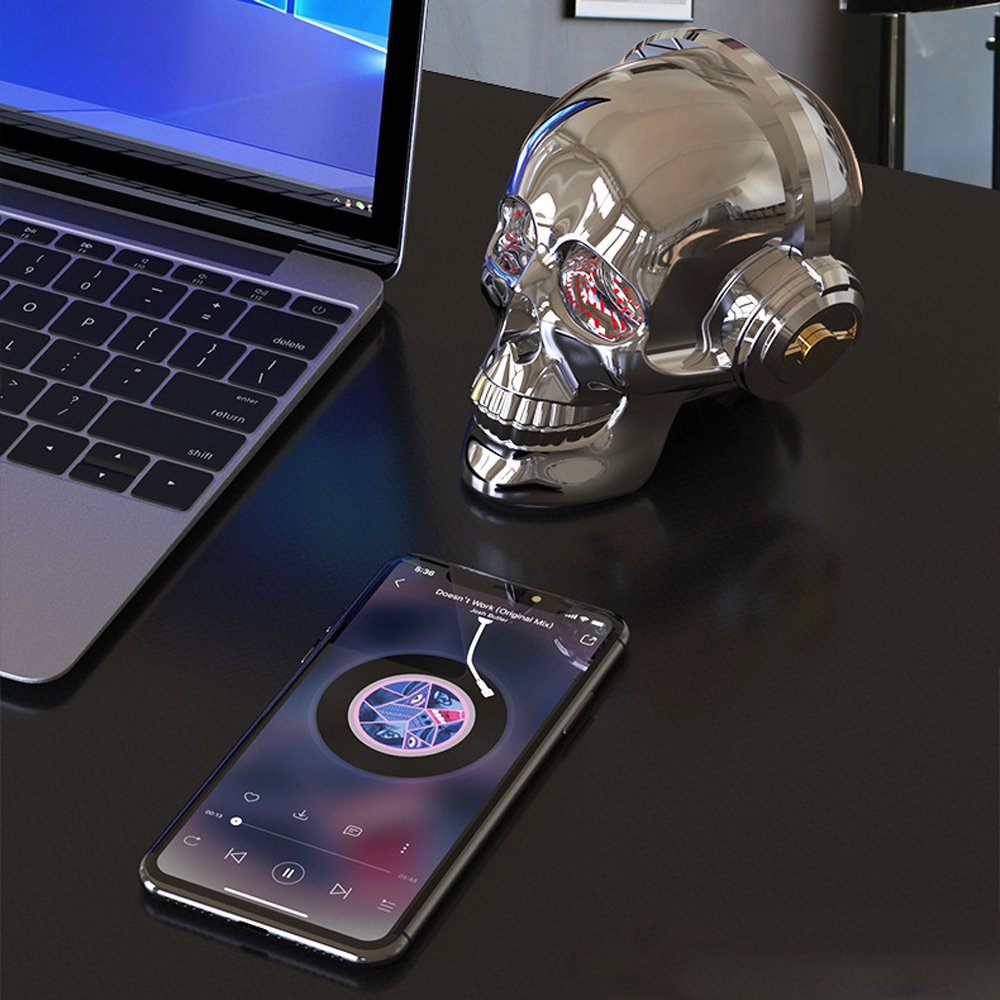 | WC Name | Golden Tooth Glossy Skull Skeleton Portable Bluetooth Speaker with Stand Feature (Black) |