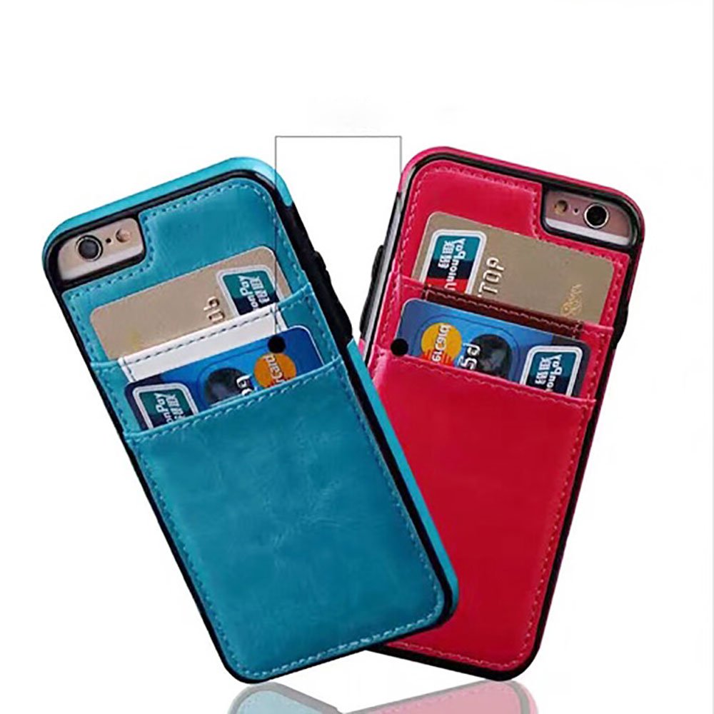 Credit ID card slot armor hybrid case cover in PU leather style design. Two pocket card slots case.