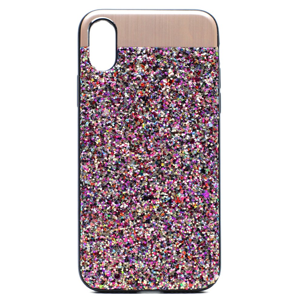 | WC Name | iPhone X (Ten) Sparkling Glitter Chrome Fancy Case with Metal Plate (Rainbow Purple) |