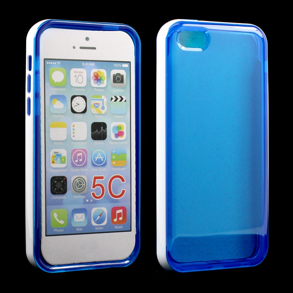 WC Description Apple iPhone 5C Clear Gummy Bumper Hybrid Case (White Blue)