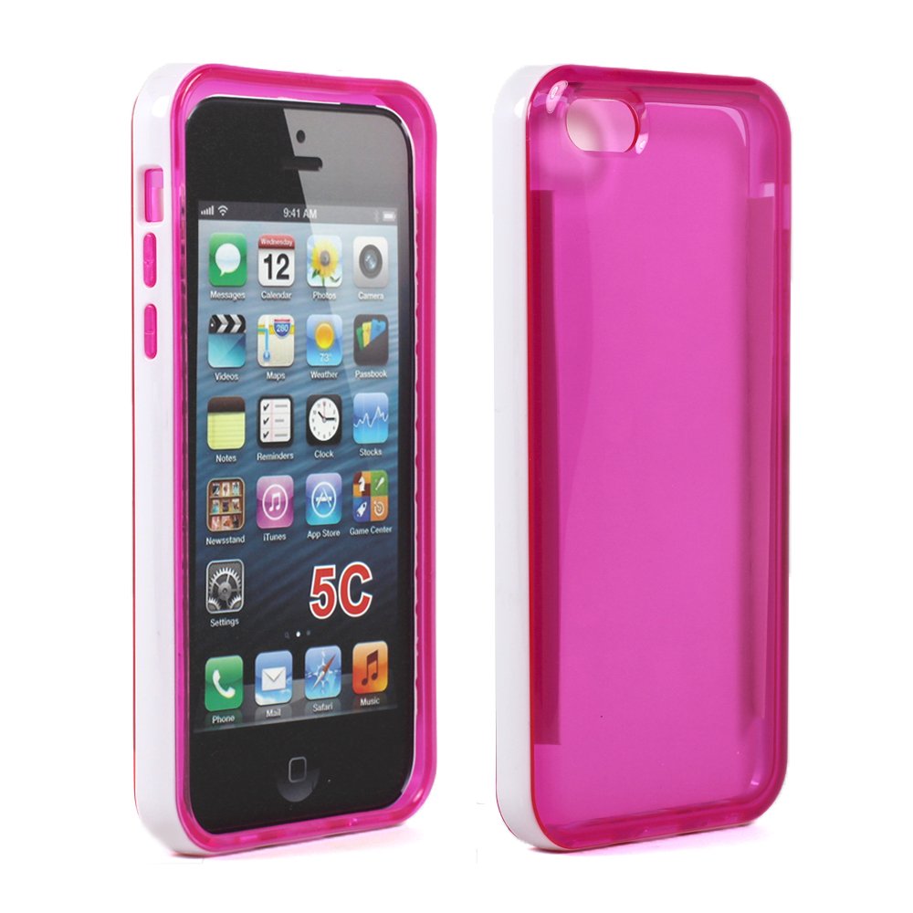 WC Name | Apple iPhone 5C Clear Gummy Bumper Hybrid Case (White Hot Pink) |
