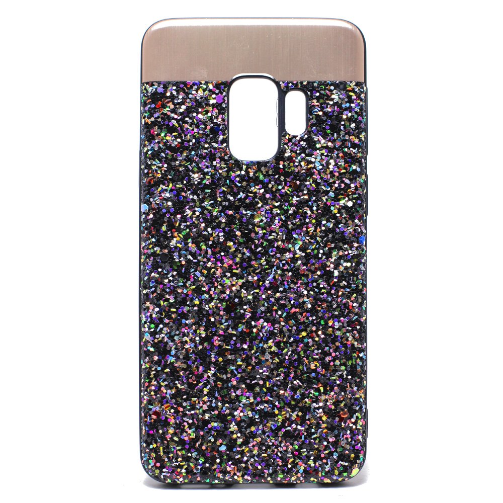 WC Name | Galaxy S9+ (Plus) Sparkling Glitter Chrome Fancy Case with Metal Plate (Black) |