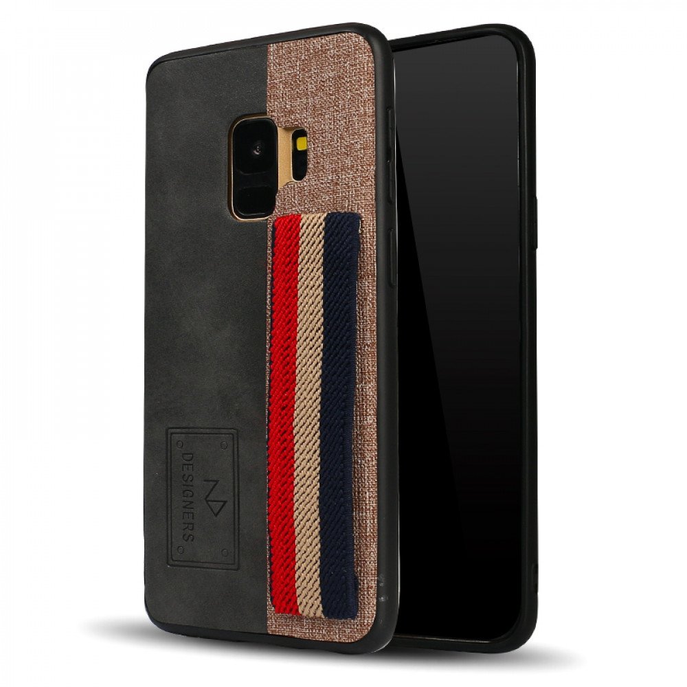 WC Description | Galaxy S9 Striped Hand Strap Grip Holder PU Leather Case (Gray) |