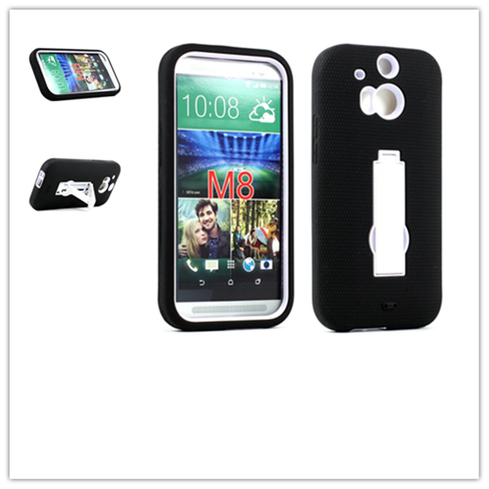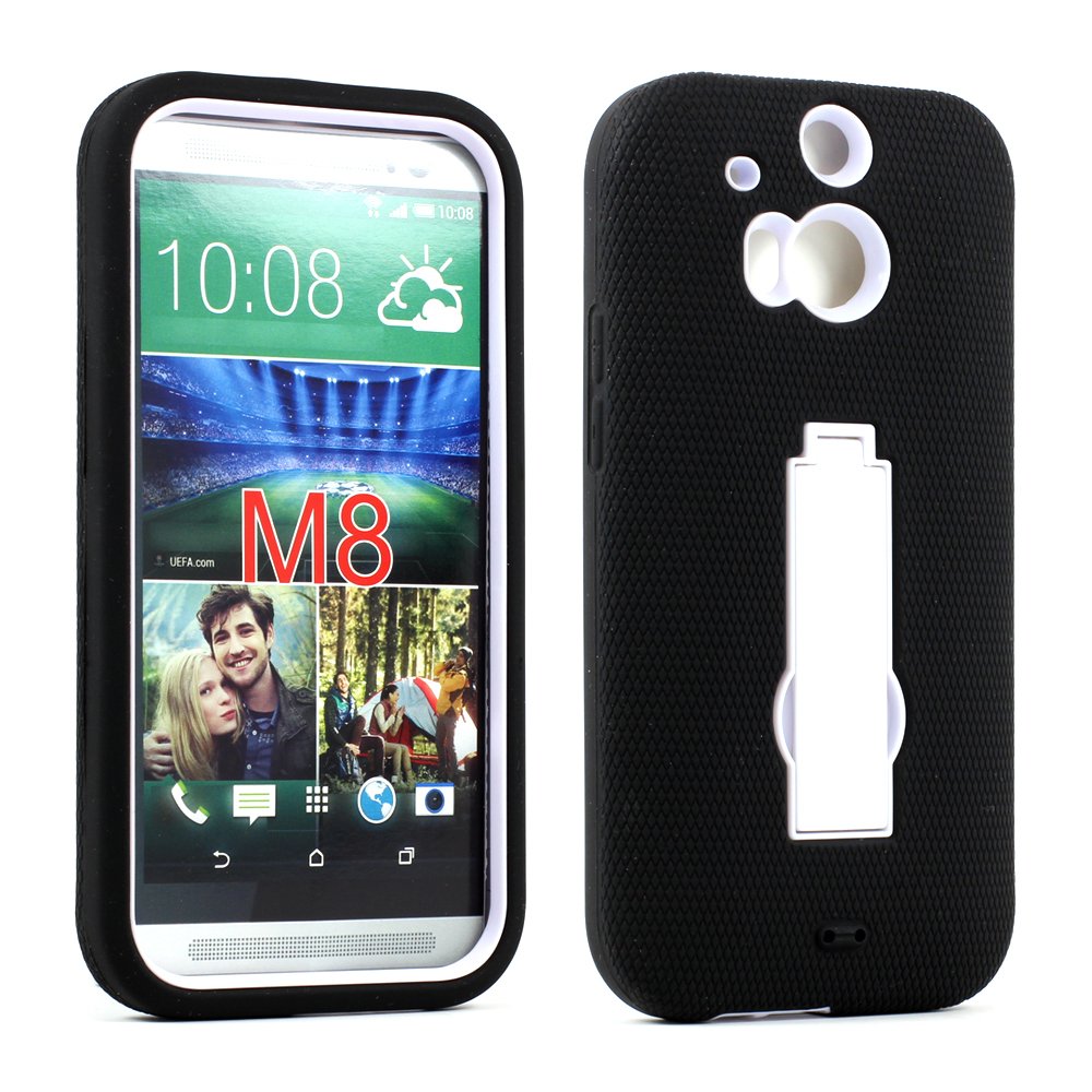 WC Description HTC One M8 Armor Hybrid Case with Stand (Black White)