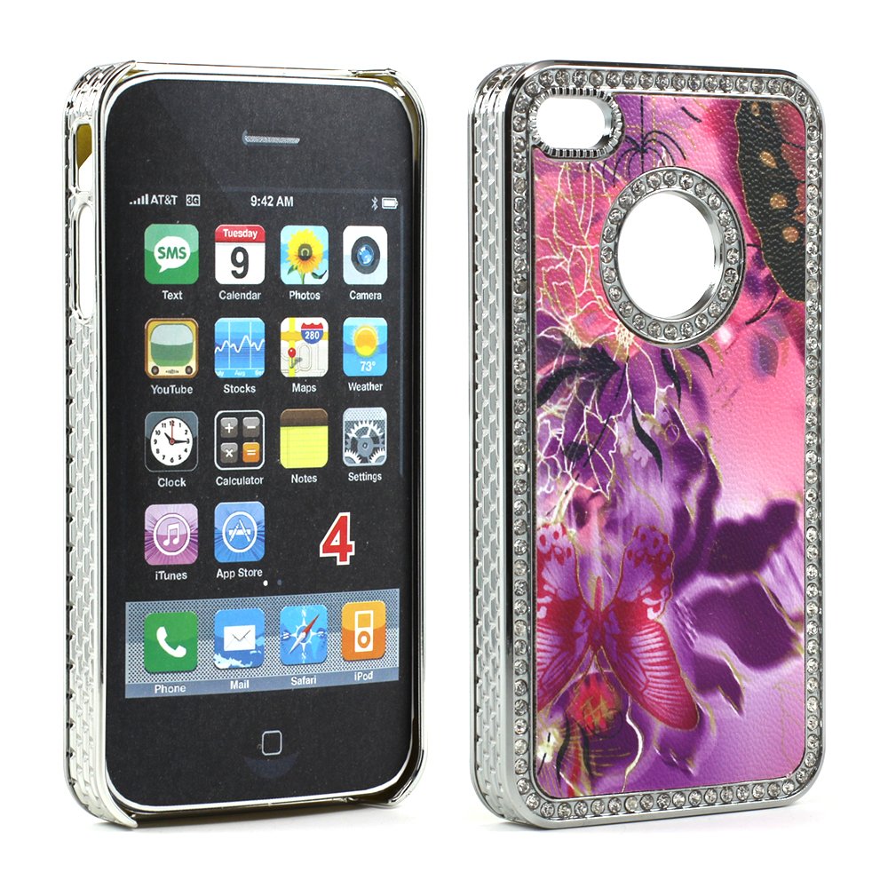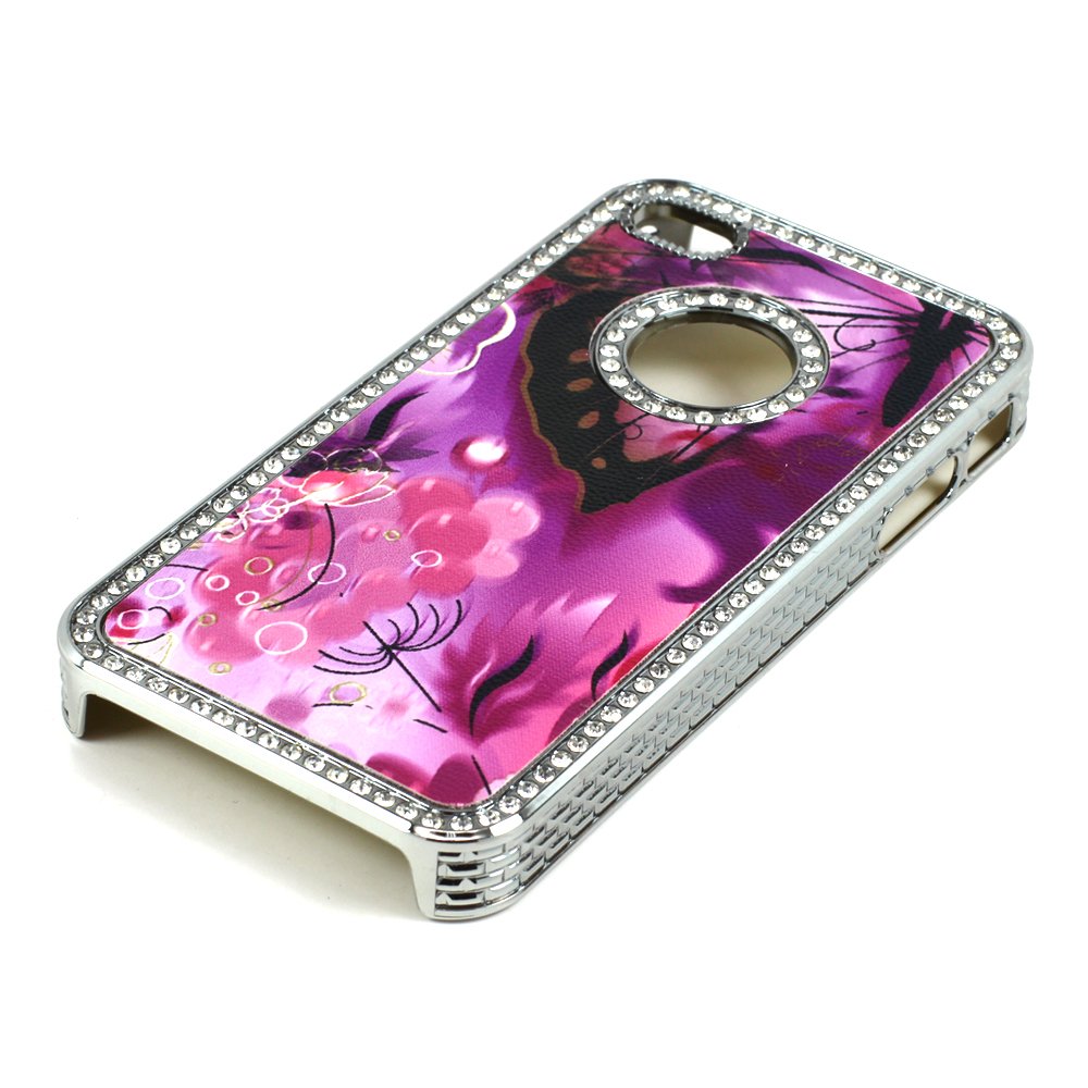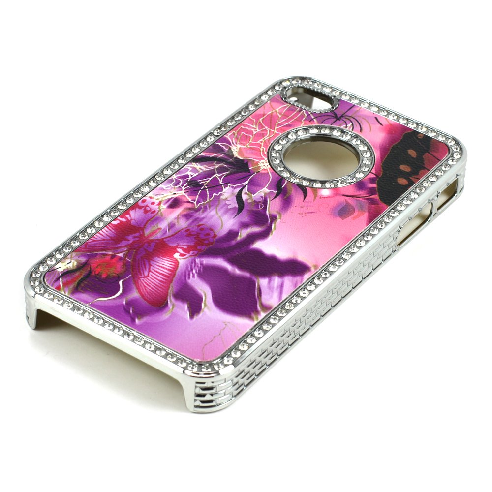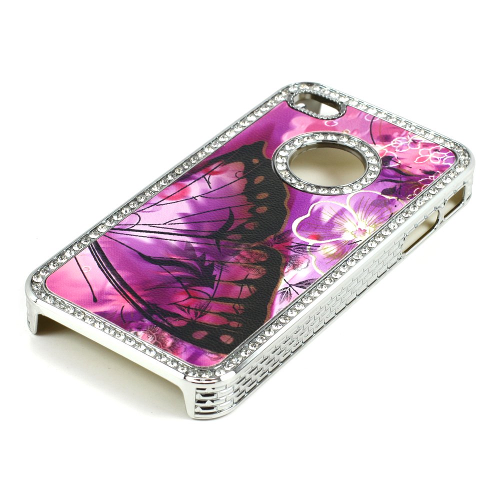 WC Description | iPhone 4 4S Butterfly Crystal Diamond Chrome Case (Purple-Mix) |