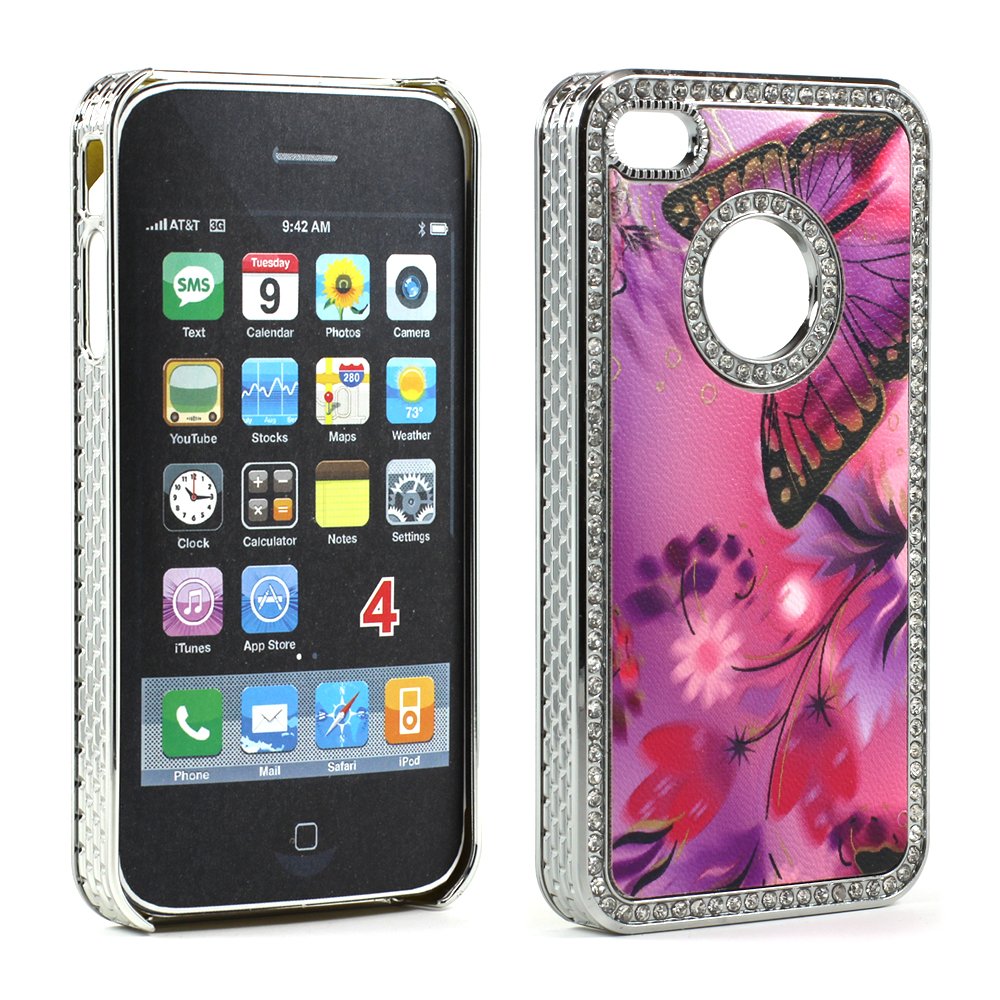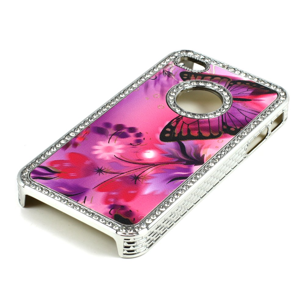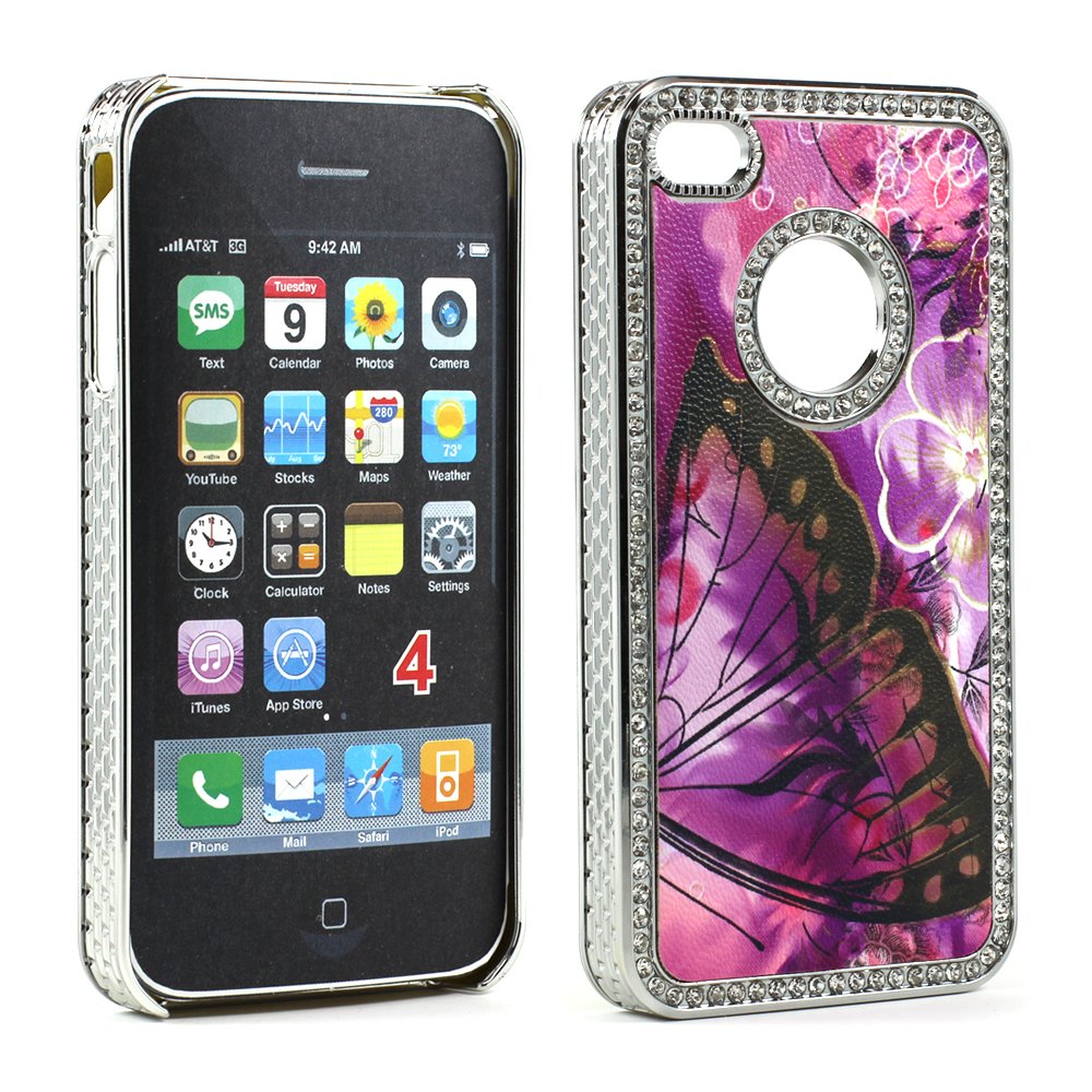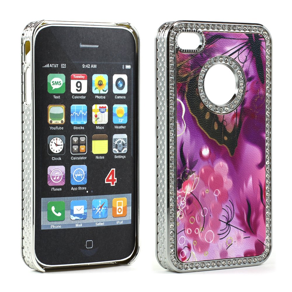 WC Description | iPhone 4 4S Butterfly Crystal Diamond Chrome Case (Purple-Mix) |