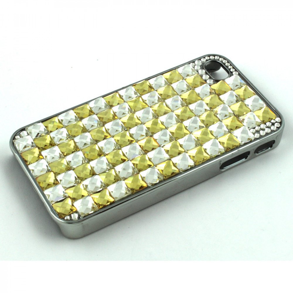WC Description | iPhone 4 4S Glass Stud Cube Bling Crystal Diamond Case (Yellow White) |