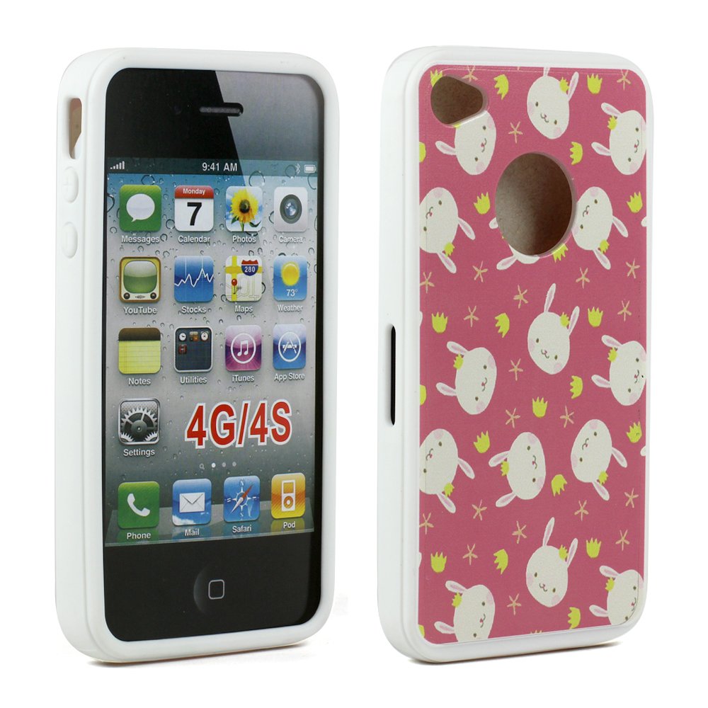 WC Name iPhone 4 4S Happy Bunny Design Gummy Case (Happy Bunny)