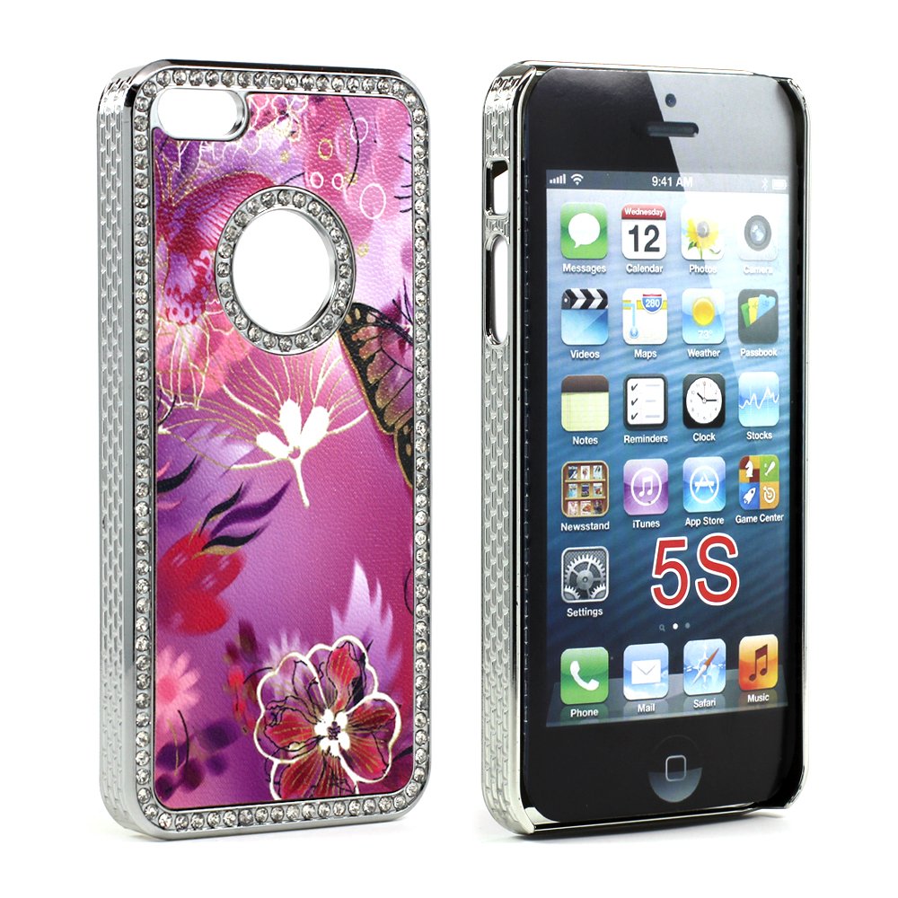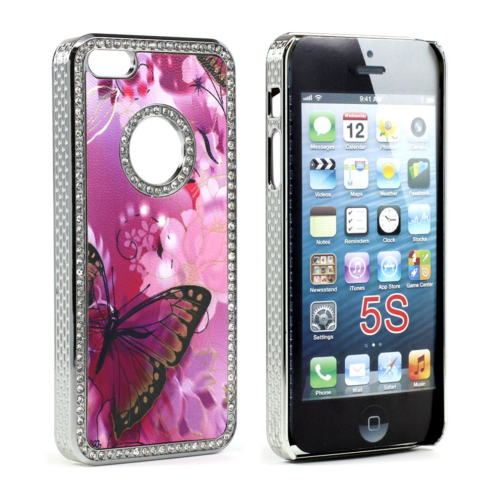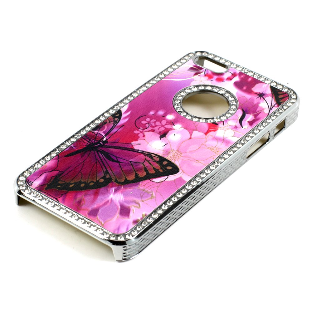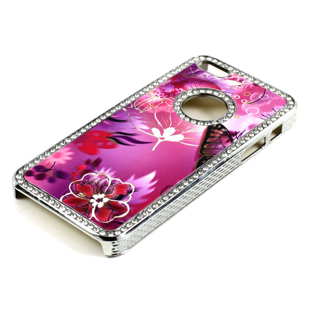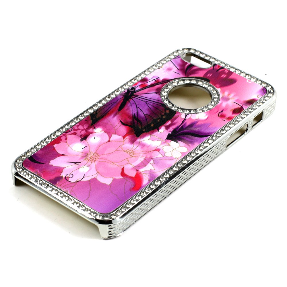 WC Description iPhone 5 5S Butterfly Diamond Chrome Case (Purple MIX)