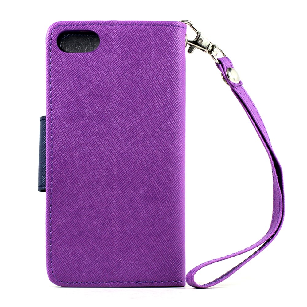 WC Description iPhone 5S 5 Diary Flip Leather Wallet Case w Stand and Strap (Purple Blue)