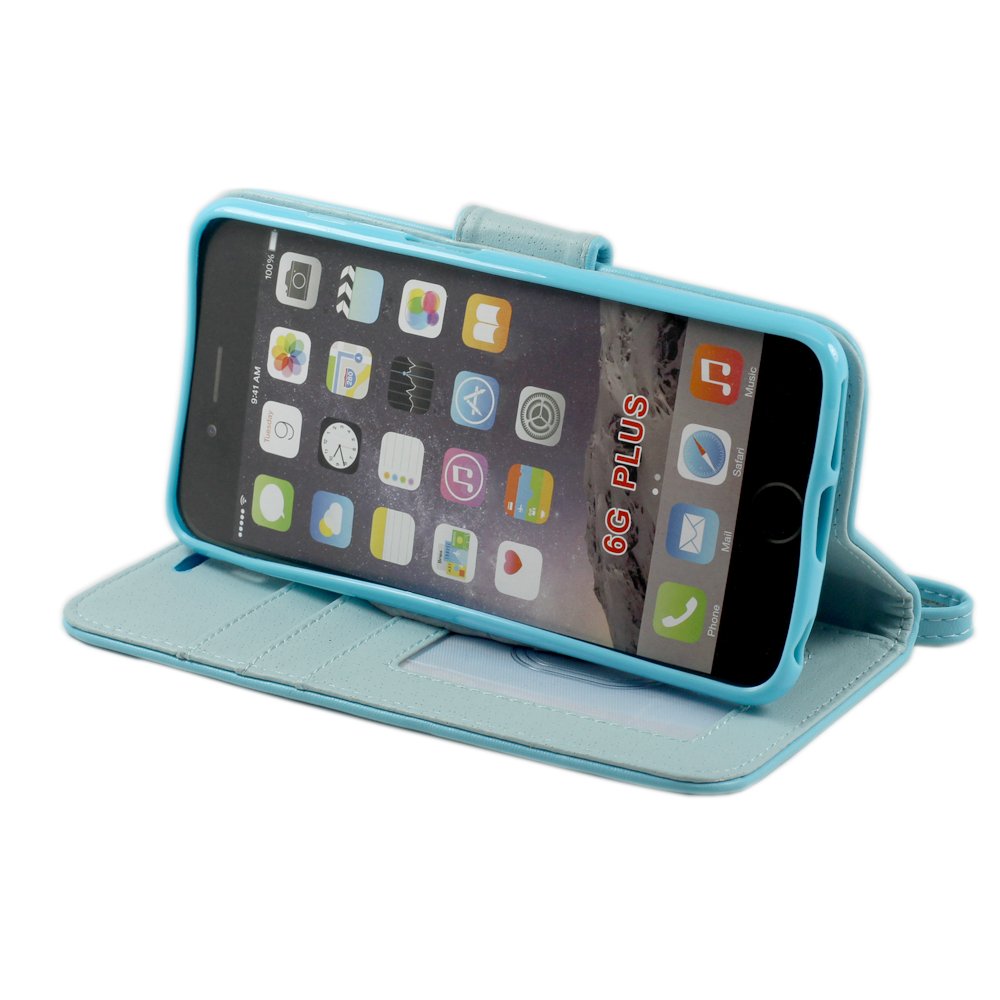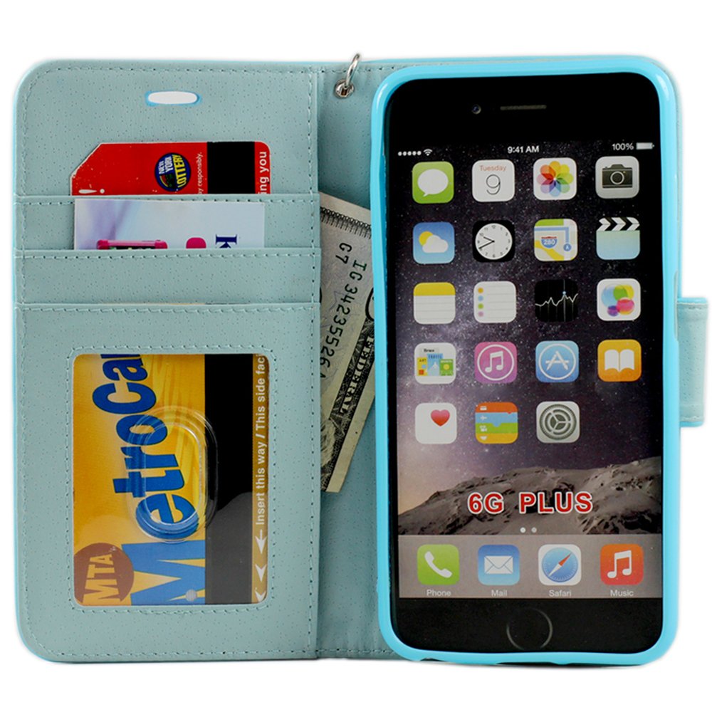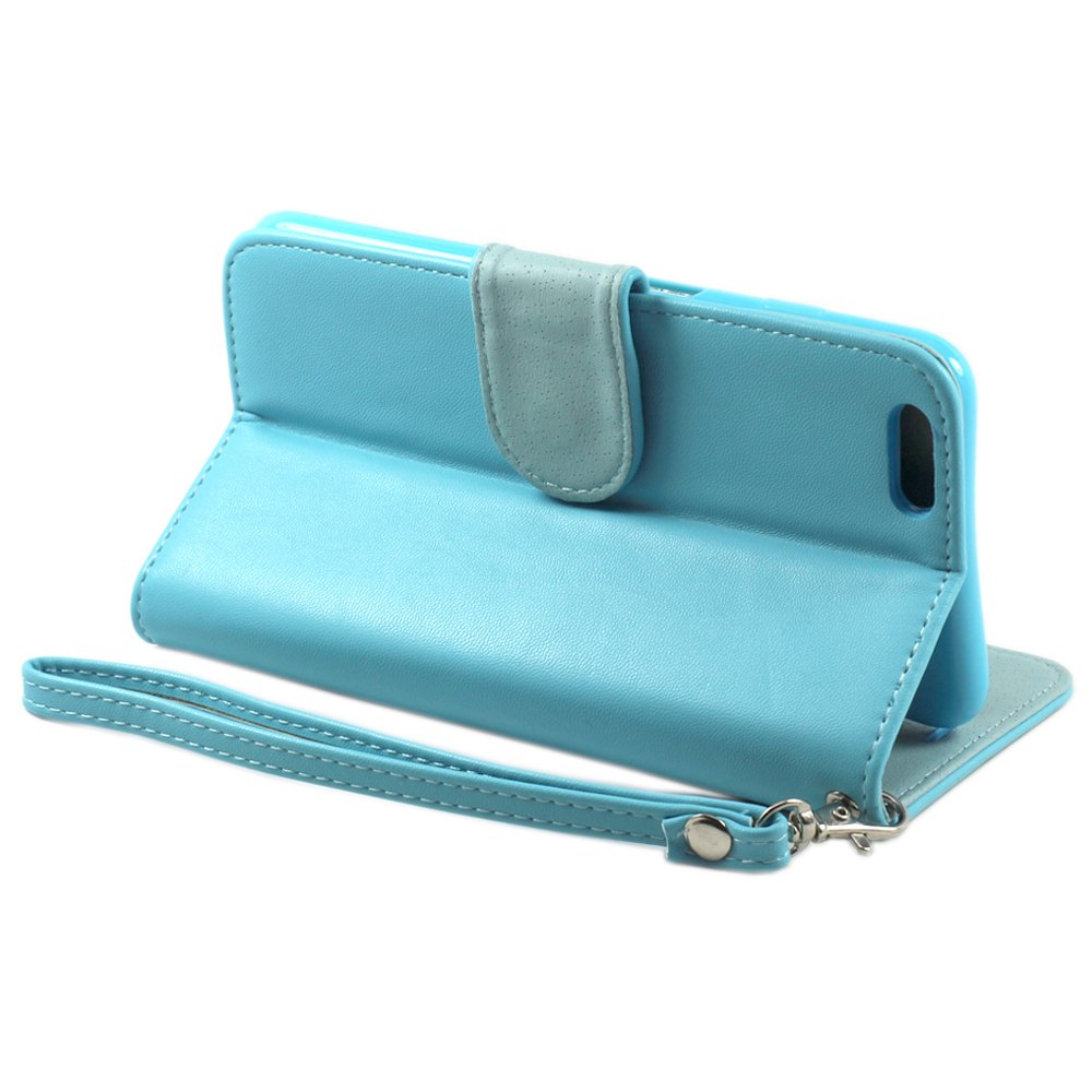 WC Name | iPhone 6 Plus 5.5 Folio Flip Leather Wallet Case with Strap (Blue) |