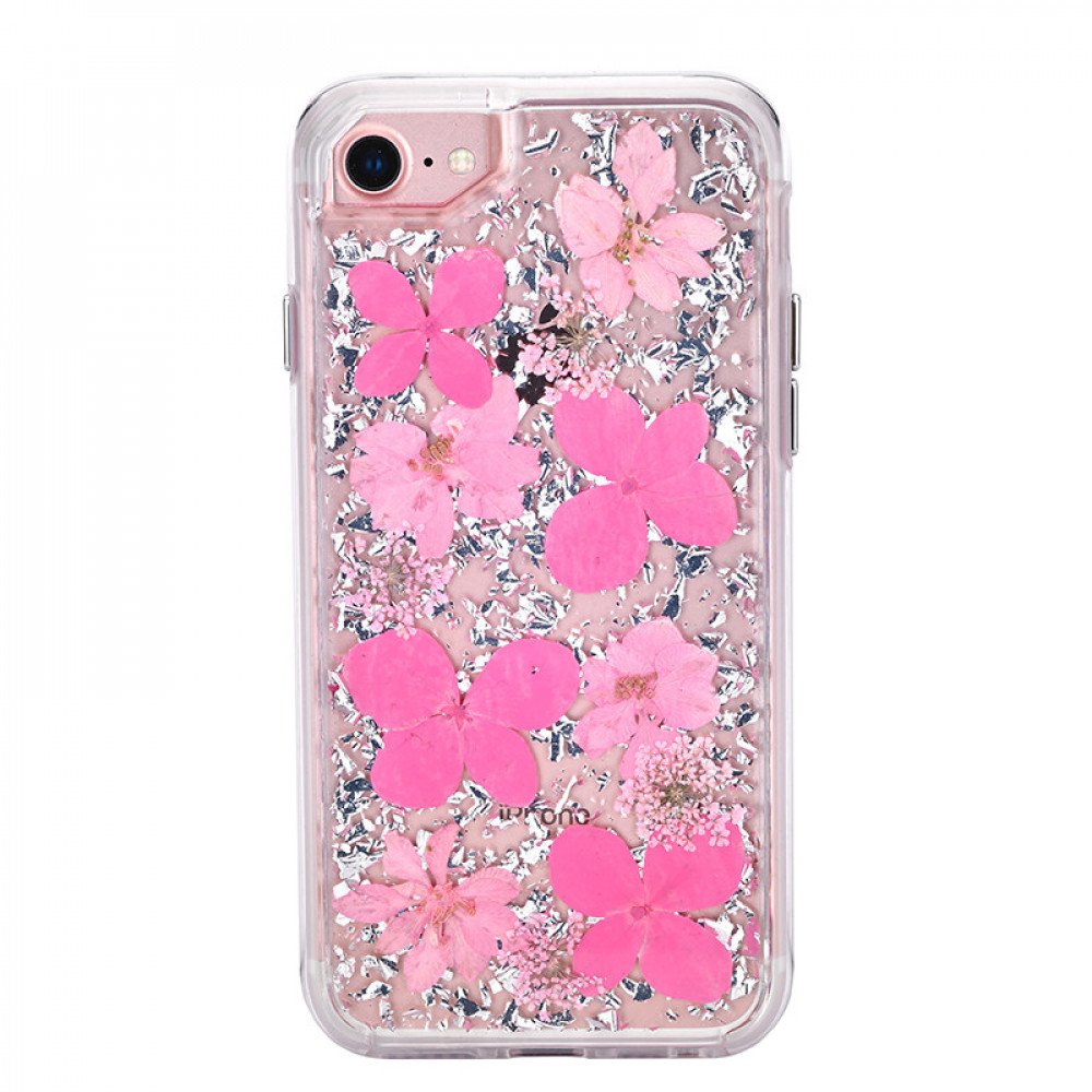 WC Description | iPhone 8 Plus / 7 Plus / 6S Plus / 6 Plus Luxury Glitter Dried Natural Flower Petal Clear Hybrid Case (Silver Pink) |