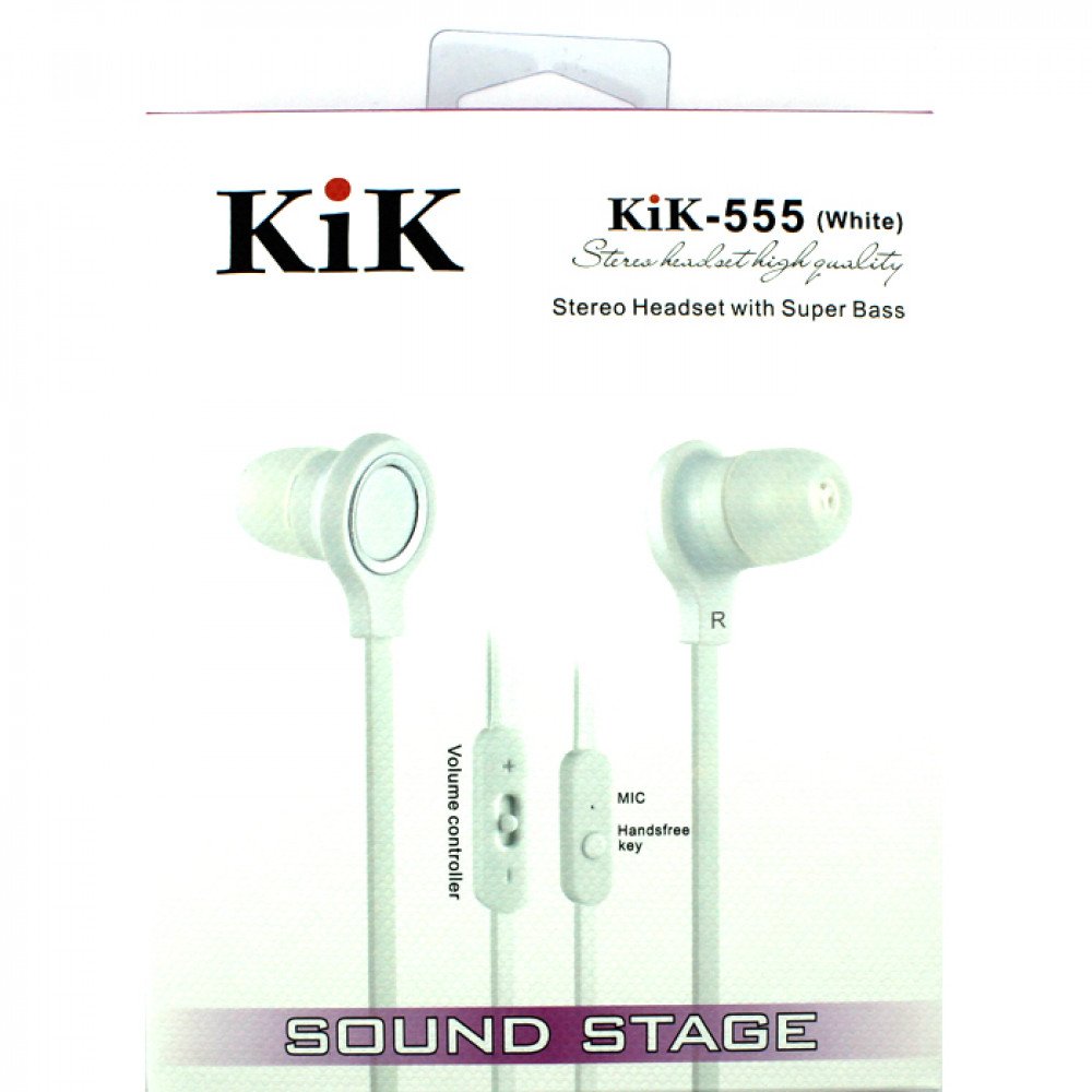 Wholesale KIK 555 Stereo Earphone Headset with Mic and Volume Control (555 White)