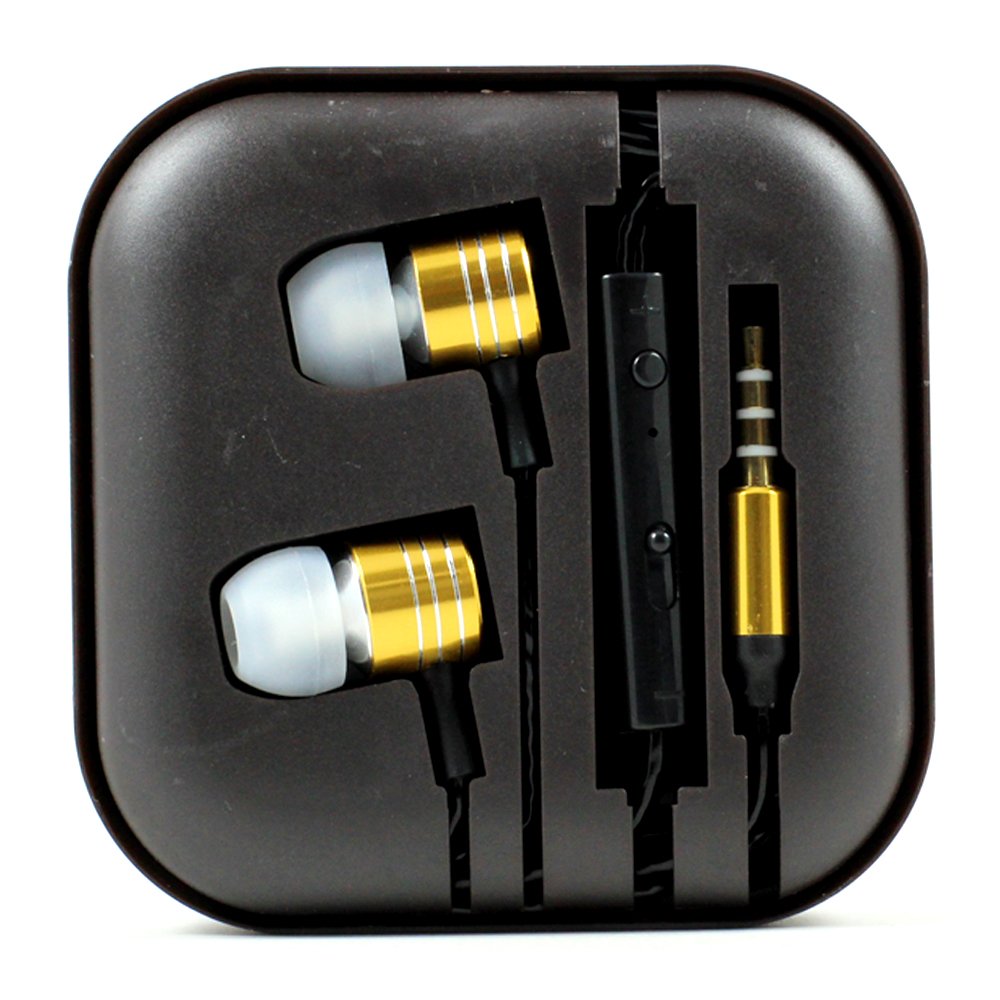 Metallic Style Stereo Earphone Headset with Mic and Volume Control (Gold)