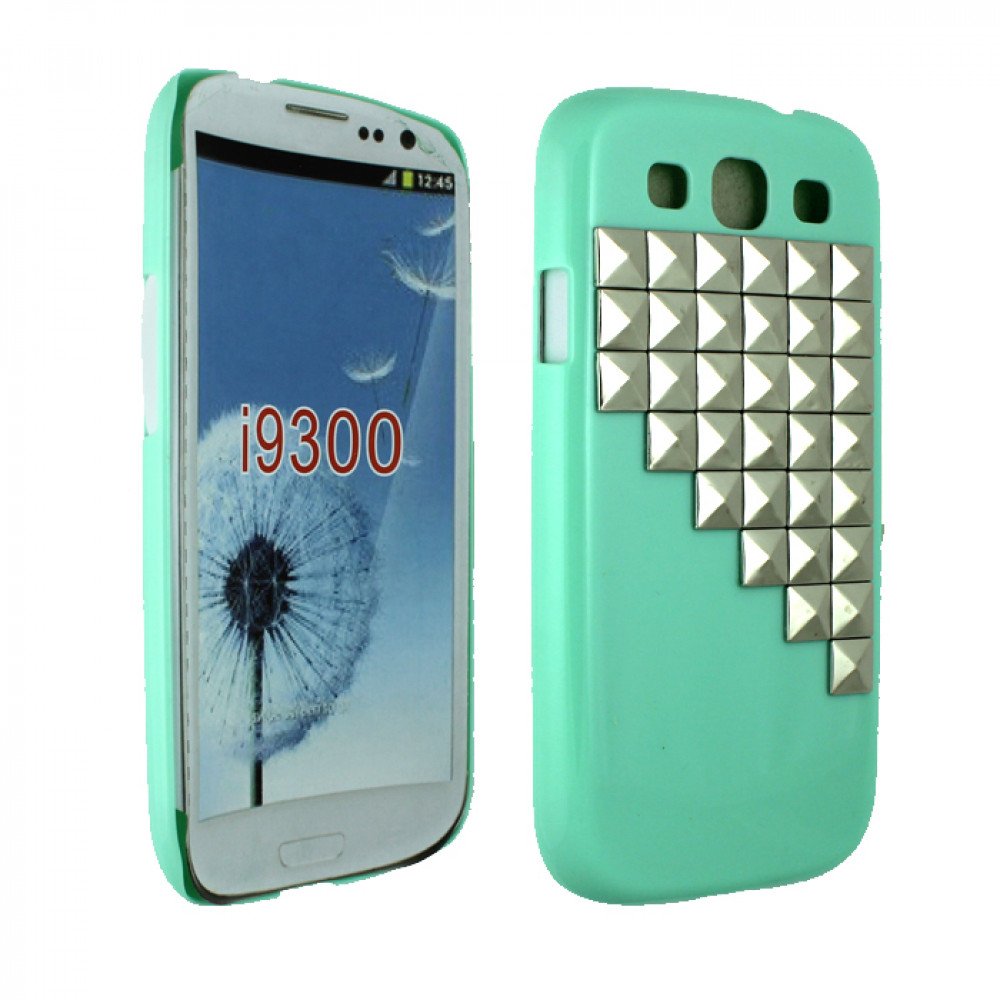 WC Name | Samsung Galaxy S3 3D Pyramids Studs Case (Silver - Green) |