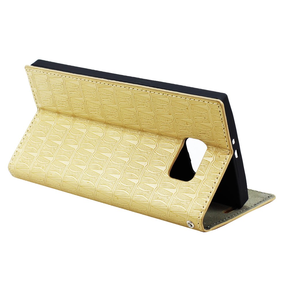 WC Name | Samsung Galaxy S6 Edge Slim Check Magnetic Flip Leather Wallet Case (Gold) |