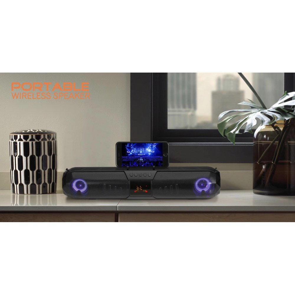 | Feature | Portable Wireless Bluetooth Speaker with USB Slot. Micro SD Card Slot, Radio Feature, Auxiliary Port, Cool LED Light |