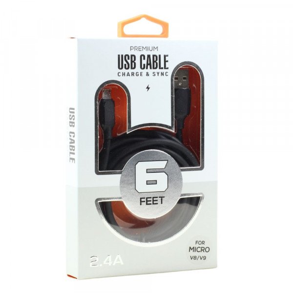 | WC Description | Micro V8V9 2.4A Heavy Duty Strong Durable Charge and Sync USB Cable 6FT (Black) |
