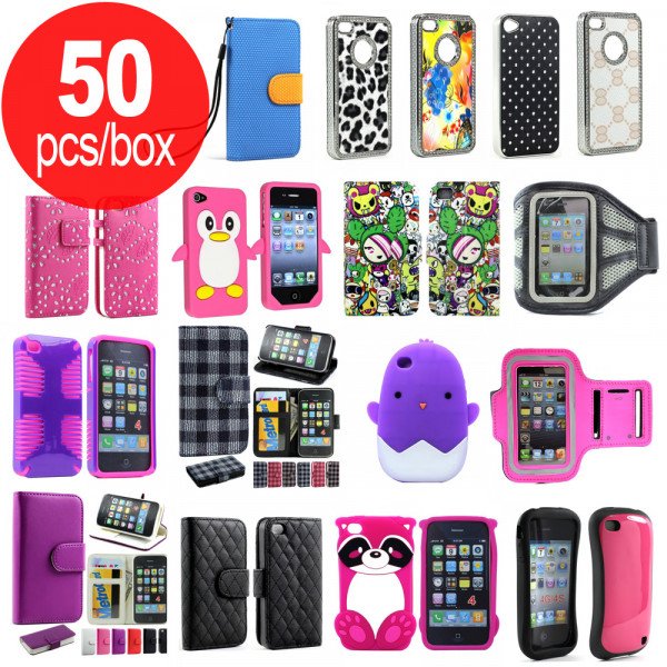 Wholesale 50pc Lot of iPhone 4S / 4 Assorted Mix Style and Color Cases - Lots Deal
