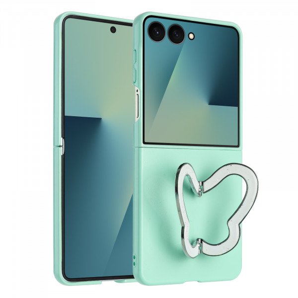 Strong Hard Glossy Shockproof Phone Case with Butterfly Kickstand for Samsung Galaxy Z Flip 7 (Green)