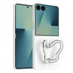 Strong Hard Glossy Shockproof Phone Case with Butterfly Kickstand for Samsung Galaxy Z Flip 7 (White)