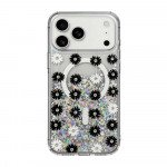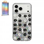Transparent Clear Glitter Shiny Magnetic MagSafe Phone Case for Apple iPhone 17 Pro Max (Black Flower)