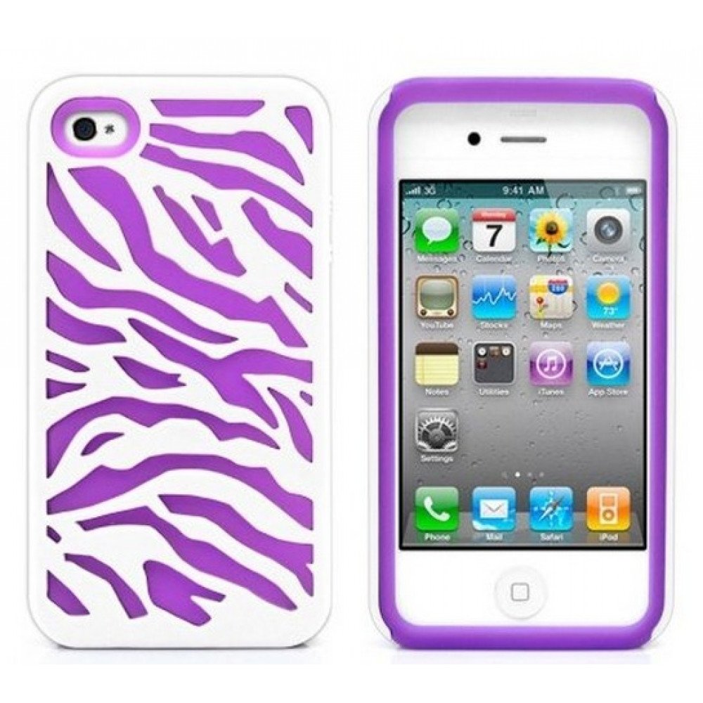 WC Description iPhone 4 4S Zebra Hybrid Case (White-Purple)